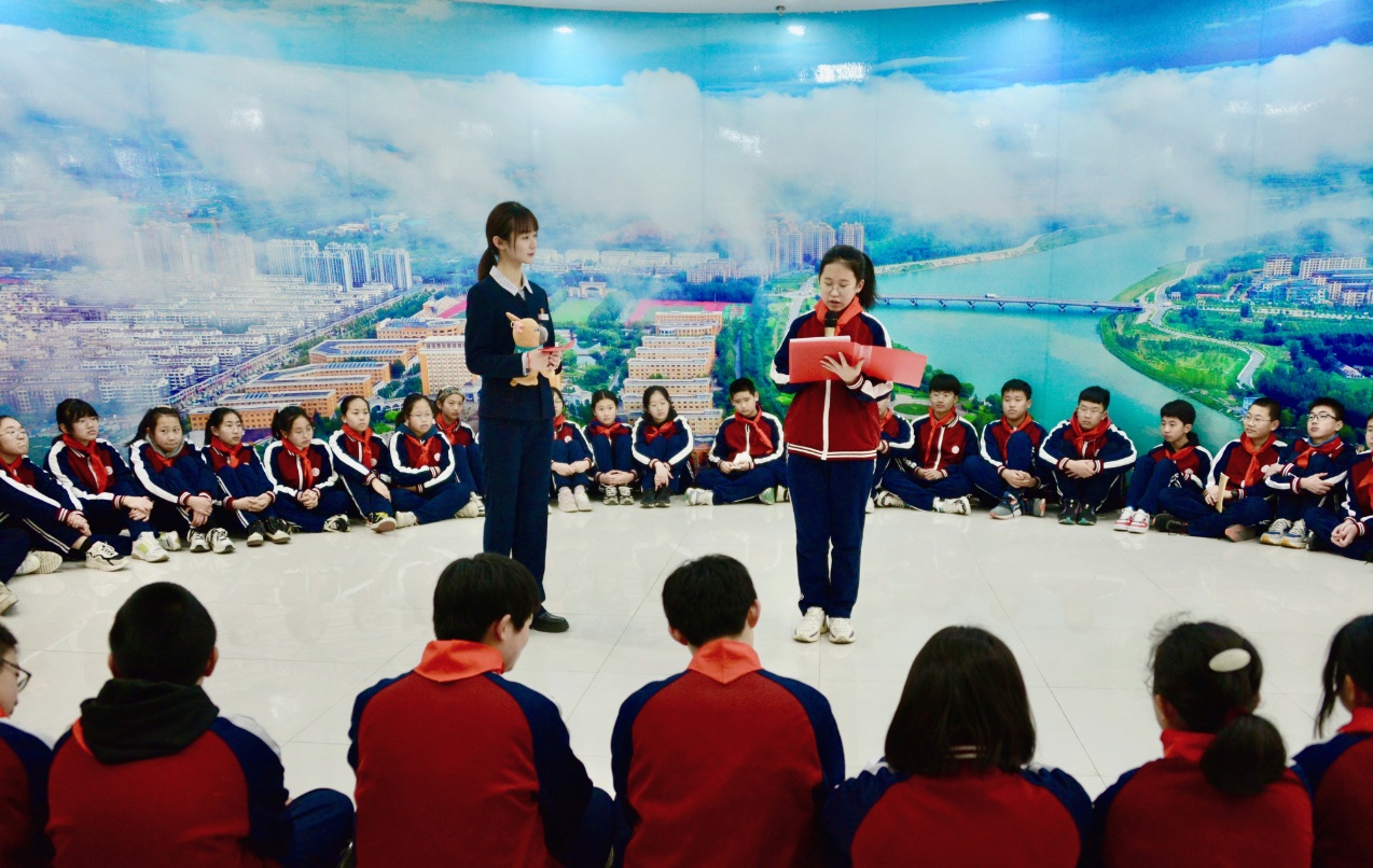 將課堂搬出教室。調(diào)整授課模式,減少說教式、講座式授課,提高學(xué)生互動(dòng)環(huán)節(jié)占比,在課程設(shè)置中增加“薪火相傳”“經(jīng)典誦讀”“你比我猜”“寫感悟”等互動(dòng)環(huán)節(jié),帶領(lǐng)學(xué)生們走進(jìn)紅色文化展館、公園、長廊,讓孩子們?cè)趹敉?、在游戲中學(xué)習(xí)紅色知識(shí)、了解紅色文化,主動(dòng)參與思考。讓教材不止是課本。在活動(dòng)中,紅色故事以課本教材為依托,著重加強(qiáng)紅色歷史文化與現(xiàn)代精神的融合,不斷賦予紅色文化新的時(shí)代內(nèi)涵,同時(shí)立足于學(xué)生視角,從身邊的感人故事、具有時(shí)代共鳴的精神點(diǎn)出發(fā),使紅色文化教育更接地氣,更具感染力和生命力?;淖譃槁暜嬃α?。