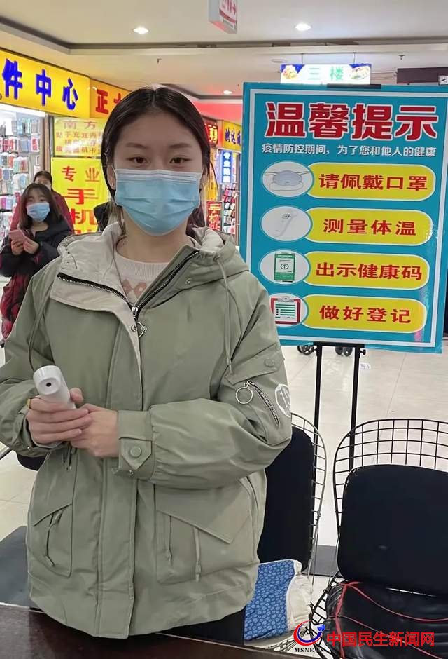 藝術(shù)與傳媒學(xué)院外聯(lián)部馬甜甜同學(xué),積極參加志愿活動(dòng),在商場里做志愿服務(wù),為消費(fèi)者量體溫,并監(jiān)督他們佩戴口罩,出示健康碼,并做好登記。保證自己以及他人的安全。
