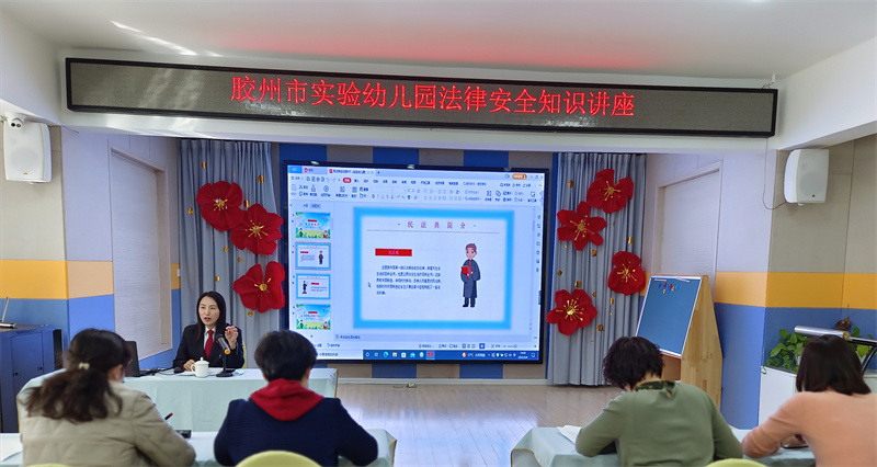 青島快訊 ( 高雪寒)3月5日,在“三八”婦女節(jié)到來之際,民建膠州支部副主委、膠州市人民法院民一庭副庭長、一級法官陳敏為膠州市實驗幼兒園的老師們送上了一堂生動的法制宣傳課。