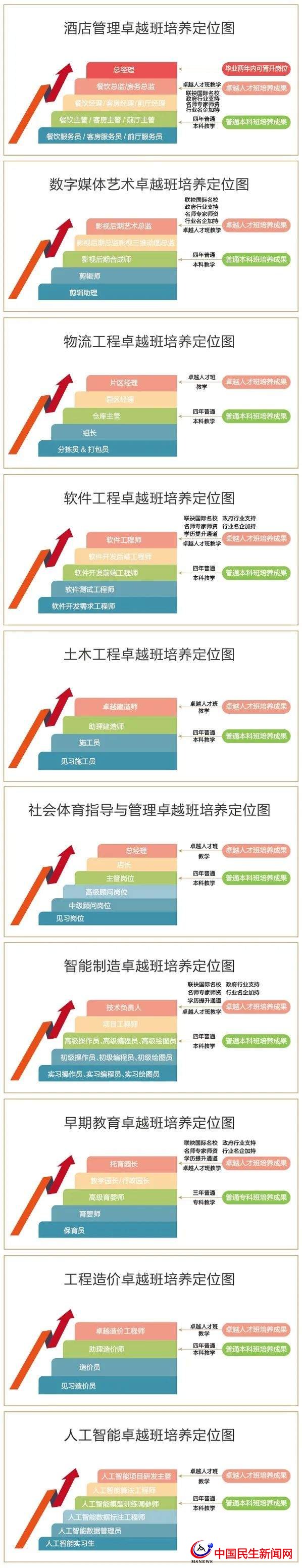 圍繞卓越人才培養(yǎng)目標(biāo),沿著培養(yǎng)路徑,夯實(shí)培養(yǎng)環(huán)節(jié),學(xué)生畢業(yè)時(shí)可達(dá)到高端就業(yè)人才標(biāo)準(zhǔn),勝任總監(jiān)、園長、技術(shù)工程師、項(xiàng)目經(jīng)理等崗位。