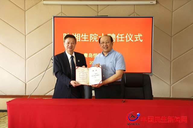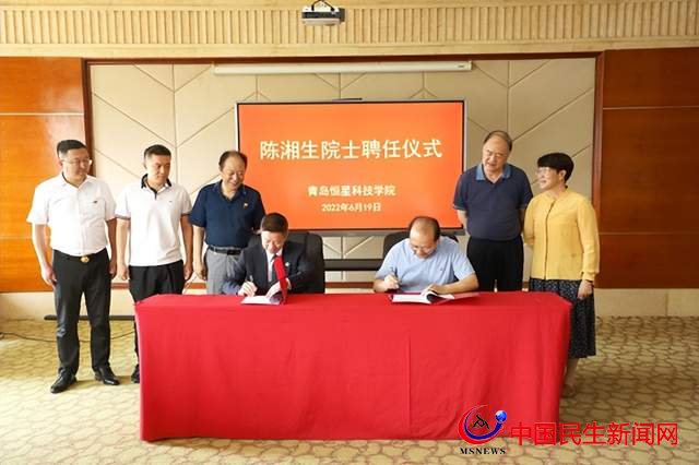 接著,舉行聘任儀式,陳湘生院士受聘為青島恒星科技學(xué)院建筑工程學(xué)院名譽(yù)院長(zhǎng),陳昌金董事長(zhǎng)為其頒發(fā)聘書。