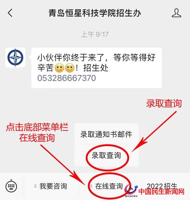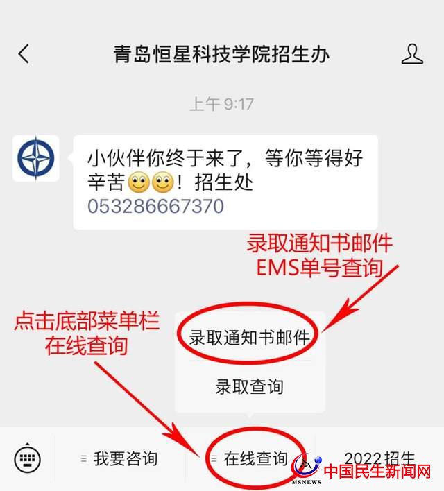 第二步:點(diǎn)擊底部菜單欄在線查詢--錄取通知書郵件