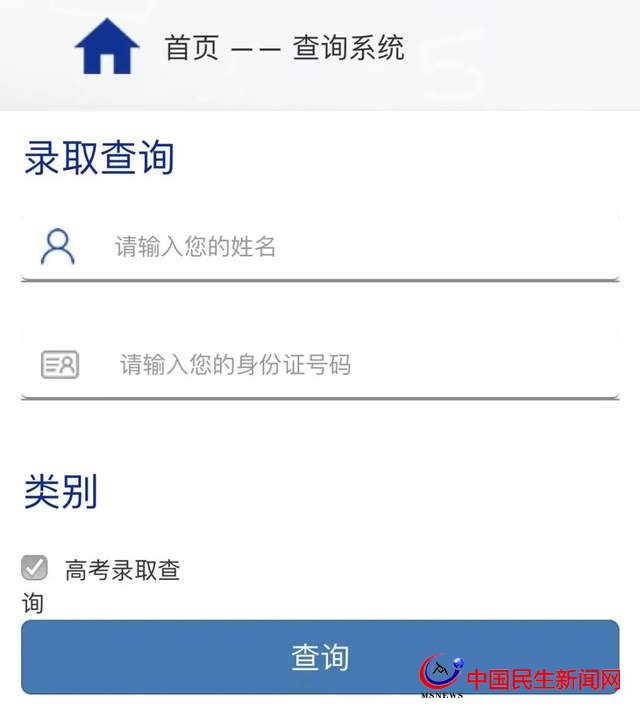第三步:進(jìn)入查詢界面,輸入“姓名”和“身份證號(hào)”即可查詢錄取結(jié)果。