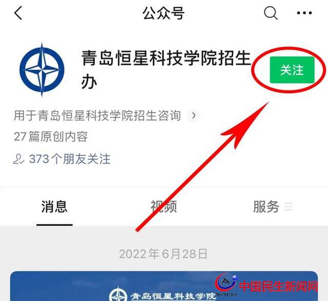 第一步:點(diǎn)擊下方關(guān)注“青島恒星科技學(xué)院招生辦”微信公眾號(hào)。