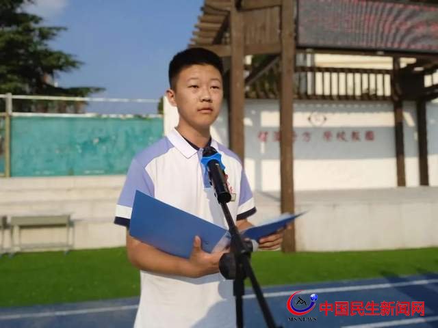 初三年級學生代表杜兆慶同學發(fā)言。在發(fā)言中他分享了自己的學習經驗并倡議各位同學在新的學期要更加努力地學習,合理安排時間,樹立目標,迎接挑戰(zhàn),鑄就智榮中學新的輝煌!