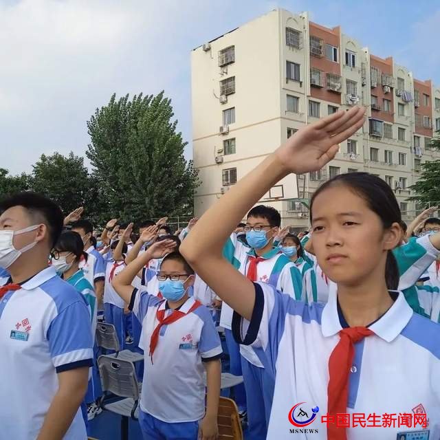 同學們一起唱國歌,響亮的歌聲傳遍了整個校園,整個校園洋溢著青春活力的歌聲。同學們仰望著冉冉升起的國旗,行著莊嚴的隊禮。