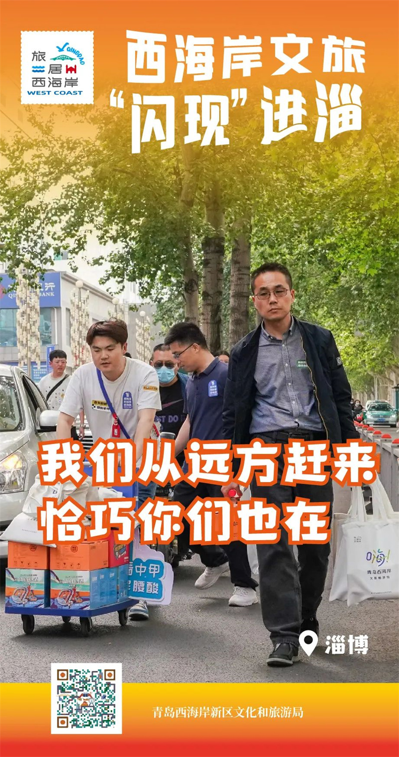 近日,西海岸文旅“閃現(xiàn)”淄博,走進八大局、燒烤廣場等地,為市民游客贈送西海岸文旅暢游包,并發(fā)出“旅居西海岸”的誠摯邀請。與之同行的還有“水兵藍”啤酒!啤酒+燒烤,激情+卷餅,讓現(xiàn)場驚喜連連!