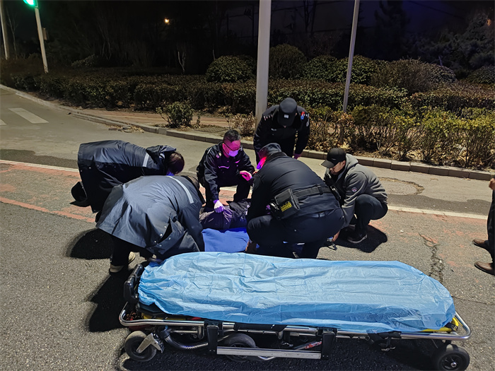 12月24日18時,膠州市公安局上合示范區(qū)治安派出所巡邏隊員途徑膠州市汾河路路口時,發(fā)現(xiàn)有一人躺在路邊,電動車倒在一側(cè),巡邏隊員立即上前詢問,得知其腿部受傷無法活動,巡邏隊員迅速聯(lián)系120進行救援,告知其地點和傷情,并提醒過往車輛注意避讓,在120急救車到達后,巡邏隊員協(xié)助醫(yī)護人員將受傷人員抬上救護車,隨后通知受傷人員家屬前往醫(yī)院照看傷者,受傷人員對民輔警的幫助表示感謝。