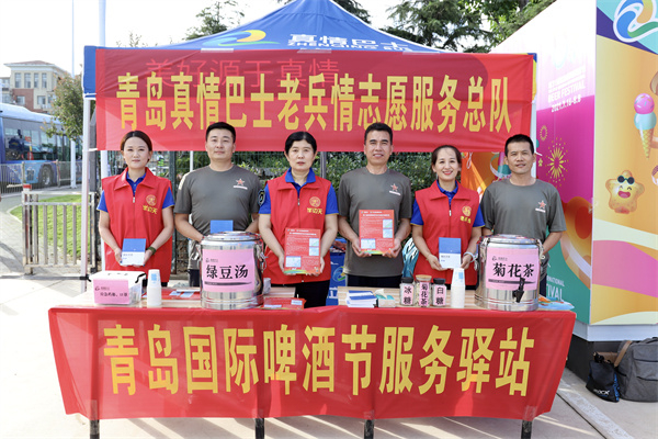 在青島火車站、西客站等主要公交樞紐站,都能看見身著刺繡五角星紅色旗袍的真情巴士客服志愿者,他們?yōu)榘朔接慰吞峁┚€路咨詢、出游指導(dǎo)等服務(wù)。在啤酒節(jié)城周邊,可以看到身著不同顏色的馬甲的真情巴士志愿者,21個(gè)團(tuán)隊(duì)的稱呼雖然各有不同,但是他們都有一個(gè)共同名字—“聚真情”志愿服務(wù)聯(lián)盟。