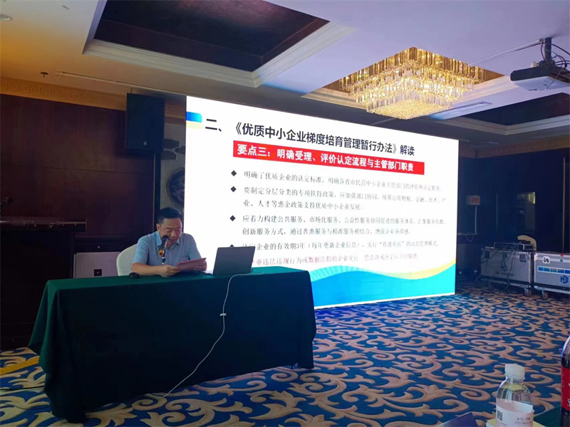 政策辦法解讀環(huán)節(jié),市民營經(jīng)濟局一級調(diào)研員李中強,首先介紹了“專精特新”中小企業(yè)發(fā)展背景,體現(xiàn)了黨中央國務(wù)院對接“專精特新”的高度重視。重點解讀了工信部《優(yōu)質(zhì)中小企業(yè)梯度培育管理暫行辦法》和我市近期印發(fā)的《青島市加快推動“專精特新”中小企業(yè)高質(zhì)量發(fā)展行動方案(2022—2025年》,圍繞辦法要點、申報對象與產(chǎn)業(yè)、受理和評價認定流程與主管部門職責(zé)、評價或認定標準、注意事項等重點內(nèi)容進行深入解讀,對于下一步加強優(yōu)質(zhì)中小企業(yè)培育和企業(yè)申報工作有積極的意義,深受企業(yè)歡迎。