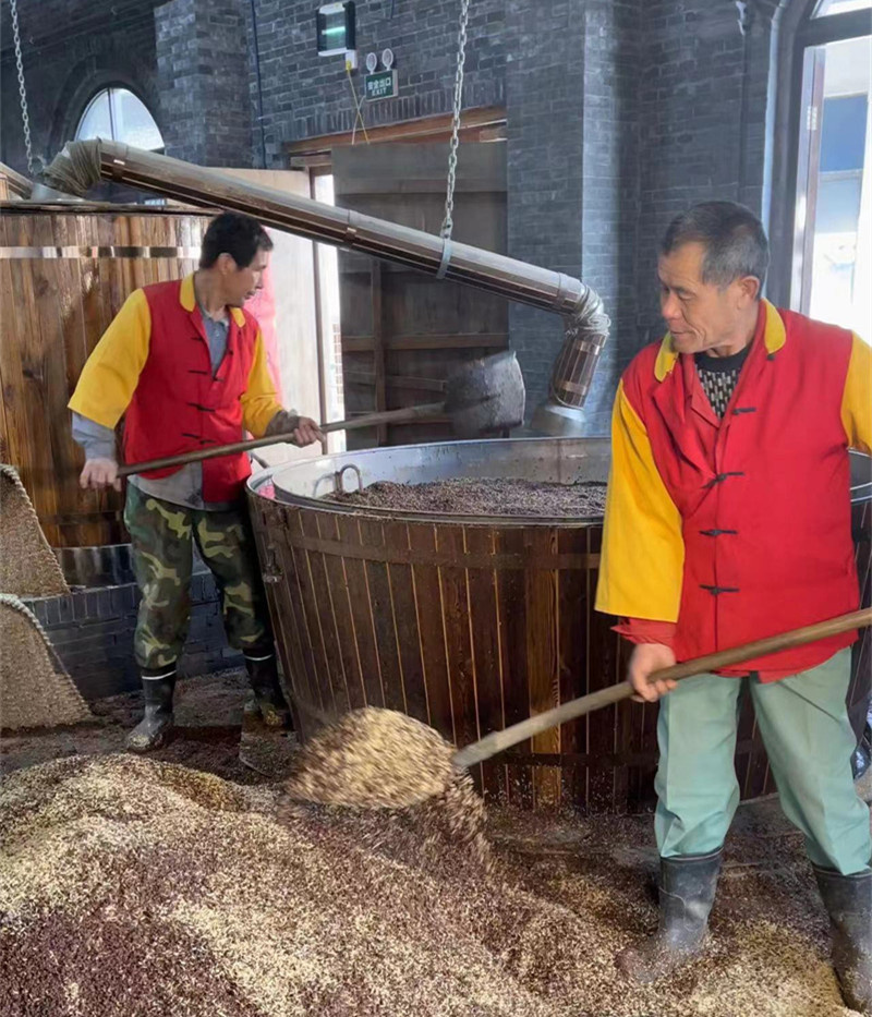 展廳內栩栩如生的泥人,展示了宏源傳統手工釀酒工藝的全部過程,從選料、粉碎、踩曲、入窖、出窖、攪拌、蒸餾、窖藏,將“水必甘、糧必精、曲必陳、器必潔、工必細、貯必久、管必嚴”的傳統古法釀酒工藝展現的淋漓盡致。