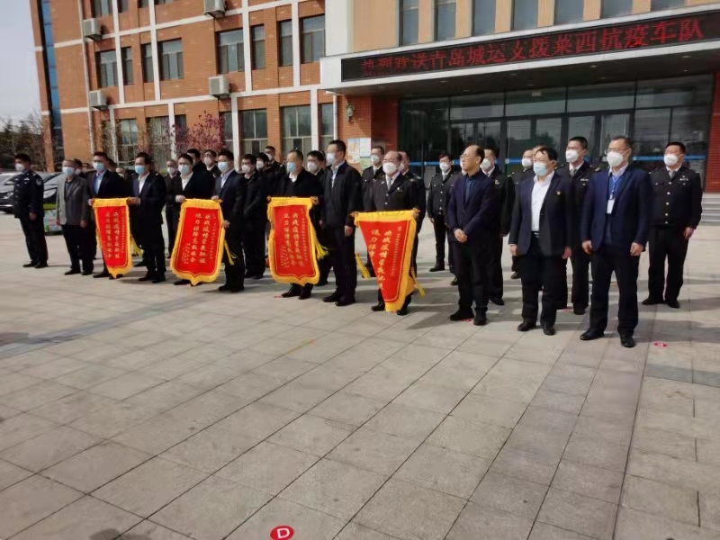 3月29日下午,青島萊西市委市政府在萊西市濟南路小學樓前舉行歡送青島城運支援萊西抗疫車隊儀式,萊西市委書記周科參加儀式并講話,萊西市領導周科、周才、吳法先、桂曉峰分別向城運控股集團、文旅集團、交運集團、交運萊西事業(yè)部贈送了錦旗。