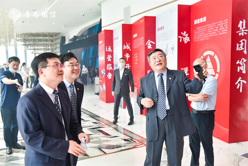 青島國信集團(tuán)黨委書記、董事長 王建輝(左) 和 市國資委黨委書記、主任 李蔚 在發(fā)布儀式上