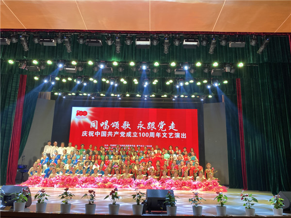 青島信息港6月6日訊(通訊員 李杰) 今天下午,為慶祝中國共產(chǎn)黨成立100周年,一場以“同唱頌歌,永跟黨走”為主題的文藝演出在青島市工人劇場拉開帷幕。本次演出由民建青島市市南區(qū)基層委員會(huì)和青島工人文化宮主辦,青島炎培文化藝術(shù)學(xué)校承辦,青島市職工賦能中心、青島思銳自動(dòng)化工程有限公司和青島森淼大健康科技有限公司協(xié)辦。民建青島市委駐會(huì)副主委王繼尚,中共市南區(qū)委統(tǒng)戰(zhàn)部副部長于永忠,市南區(qū)政協(xié)副主席、民建市南區(qū)基層委員會(huì)主委劉樹國和青島市工人文化宮黨總支書記、主任尹常忠等領(lǐng)導(dǎo)應(yīng)邀觀看了演出。
