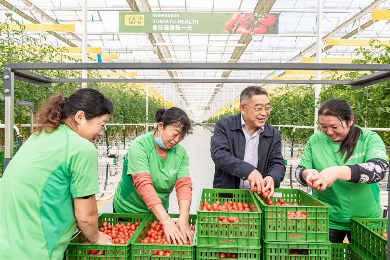 在萊西七星河新村智慧農(nóng)業(yè)小鎮(zhèn)的智能溫室大棚中,伴隨著悠揚的音樂,一株株大小一致紅色番茄在恒溫、恒濕的環(huán)境中將枝干伸向荷蘭紋絡式玻璃幕墻。據(jù)七星河新村第一書記張建東介紹,僅一個14000平方米智能溫室大棚便可解決就業(yè)200余人,有效拉動了當?shù)剞r(nóng)民就業(yè)。“數(shù)據(jù)已經(jīng)成為農(nóng)業(yè)生產(chǎn)中重要的生產(chǎn)要素,我們將視野投向數(shù)字農(nóng)業(yè),二期的智能溫室大棚投產(chǎn)在即,加上與之配套的中性硼硅藥用玻璃和碲化鎘薄膜太陽能電池項目,可安排勞動力2000人,實現(xiàn)年產(chǎn)值35億元、稅收3.7億元。”張建東說。
