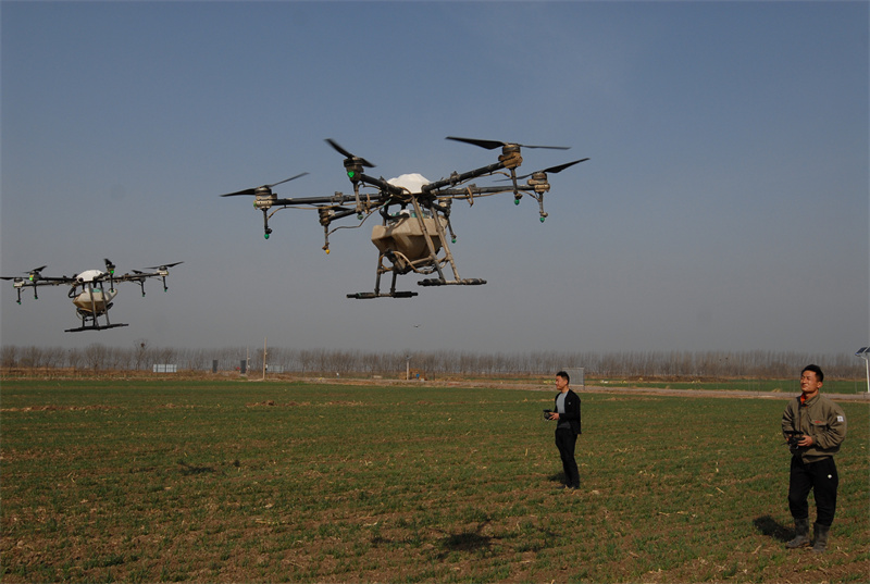青島快訊 3月15日,山東省青島市即墨區(qū)段泊嵐鎮(zhèn)管路埠村孫云高家庭農場的麥田里,高標自走式打藥機、植保無人機一字排開,孫云高正在給小麥打殺蟲劑、殺菌劑和葉面肥。