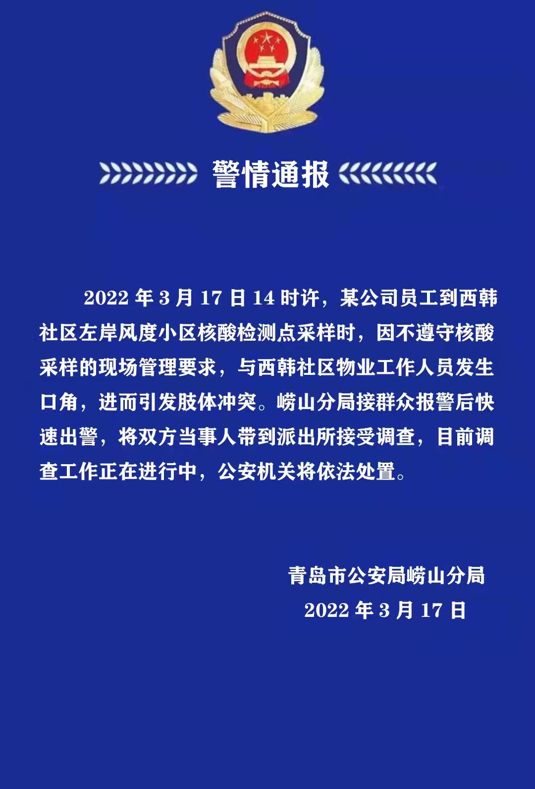 地方 > 【警情通報(bào)】嶗山某公司員工核酸檢測(cè)點(diǎn)采樣不服從管理發(fā)生爭斗被調(diào)查