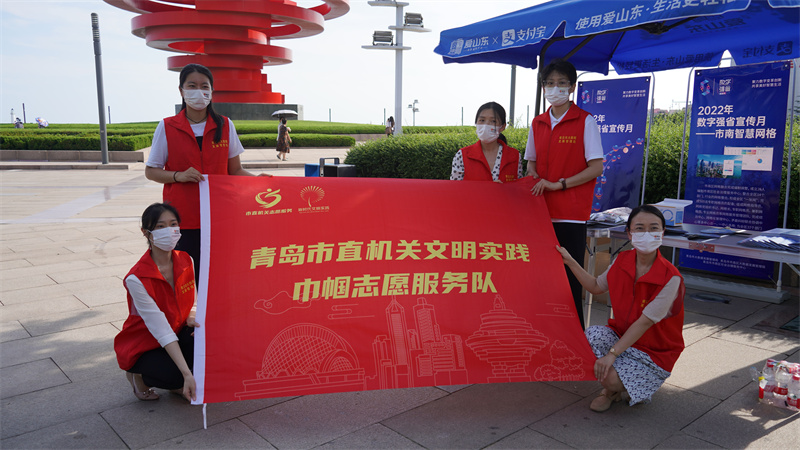 青島市大數(shù)據(jù)局文明實踐巾幗志愿服務隊組織2022數(shù)字強省線下宣傳活動