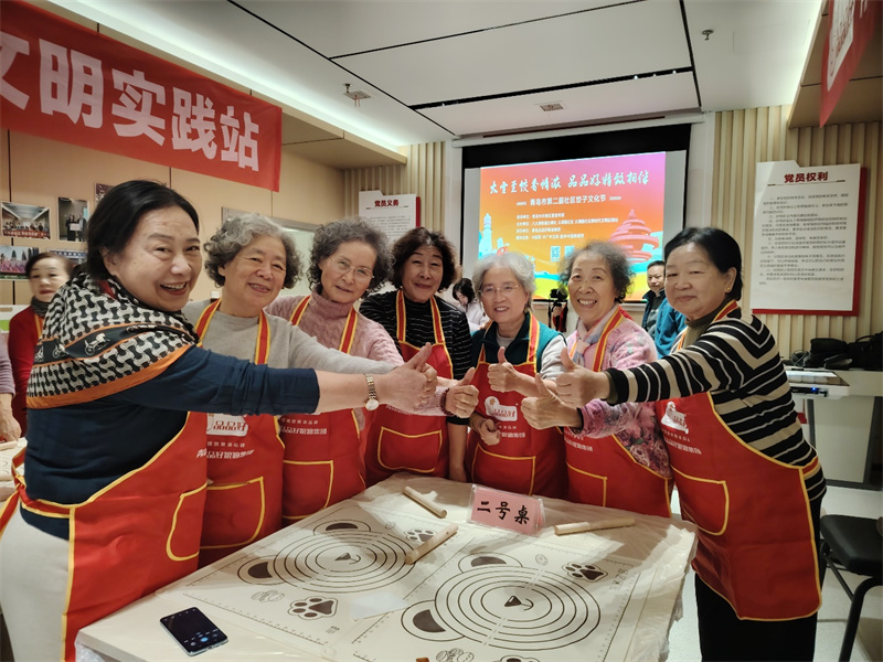 活動中,居民們變身“大廚”,分工明確,調(diào)餡、包餃子,有條不紊、配合默契,忙得不亦樂乎。在眾人的努力下,不一會兒,圓滾滾的餃子鋪滿了桌子,一盤盤精致的餃子隨即誕生,承載著愛和暖意的新鮮餃子呈現(xiàn)在大家面前,大家的臉上都洋溢著開心的笑容。在歡聲笑語中,大家一起品嘗勞動成果,在美味的餃子中嘗到了團結(jié)和友誼的味道,品出了幸福和美好生活的滋味。