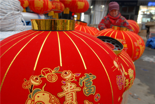 十二生肖一直是年貨市場的主題,今年也不例外,在許多制作精美的“福”字貼紙上,都印上了可愛的牛模樣,有的是卡通形象的牛手拿“福”字,有的是直接用卡通牛作為背景,將鏤空的“福”字印在上面。花燈也不例外,卡通牛的形象頻頻出現(xiàn)在上面。店主們介紹,雖然這些帶有牛圖案的“福”字貼紙比普通的要貴出許多,但是更受消費(fèi)者歡迎。“牛氣沖天,這只‘牛’真可愛,我要這個(gè)牛娃娃。”看到貨架上的牛玩偶,一個(gè)小男孩一邊念著玩偶身上“牛氣沖天”的字樣,一邊拽住家長要買。看到生意上門,店主馬上開口介紹道:“今年是牛年,你看這只牛身上紅彤彤的,尾巴和角還是金色的,多可愛,買一只吧。”一個(gè)簡單的場景,襯托出濃濃的年味。(張濤 國琦)
