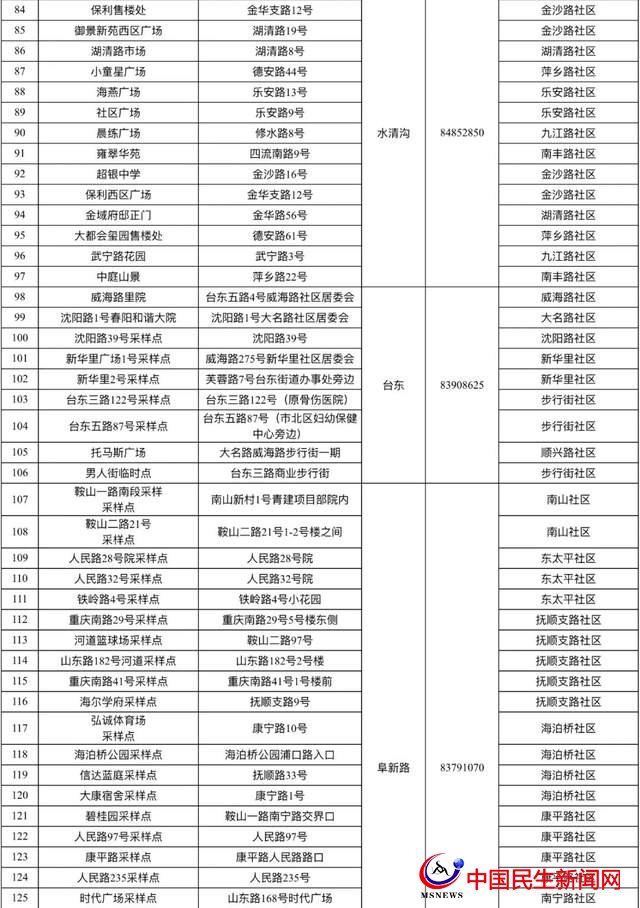 市北區(qū)核酸檢測(cè)采樣點(diǎn)一覽表