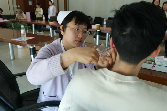 在中醫(yī)診區(qū),代表們體驗(yàn)了撳針療法和耳穴壓豆法。撳針療法是將特制的小針埋入穴位皮內(nèi),進(jìn)行長時間的刺激。醫(yī)生手法嫻熟地將撳針埋入體驗(yàn)者的穴位,幾乎沒有明顯痛感。耳穴壓豆法則是在耳朵的相應(yīng)穴位上貼上王不留行籽,通過按壓來刺激穴位。體驗(yàn)者按照醫(yī)生的指導(dǎo),輕輕按壓耳穴,感受著身體的微妙變化,對中醫(yī)通過耳部穴位調(diào)節(jié)全身的理念有了更深刻的認(rèn)識。