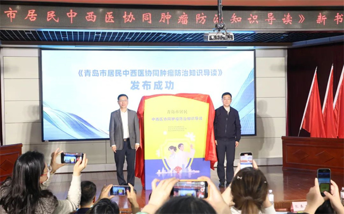 在《青島市居民中西醫(yī)協(xié)同腫瘤防治知識導(dǎo)讀》新書發(fā)布會上,青島市衛(wèi)生健康委員會黨組成員、市計劃生育協(xié)會分管日常工作的副會長趙國磊和青島出版集團(tuán)有限公司副總經(jīng)理徐建民共同為新書揭幕,并向市社科聯(lián)、市老年大學(xué)、市圖書館、市北區(qū)衛(wèi)生健康局、康復(fù)大學(xué)青島中心醫(yī)院、青島市疾病預(yù)防控制中心、青島市中心血站以及青島國際航運(yùn)中心代表贈送了新書。