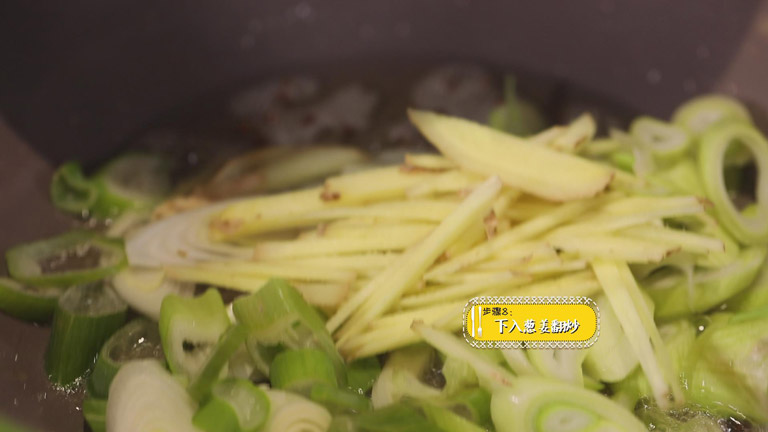 8.鍋中留底油,下入蔥姜翻炒。加入醬油、糖和適量的水燒開。