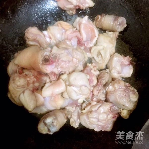 6.雞皮金黃,肉泛白烹入少許料酒,并煮沸揮發(fā)。