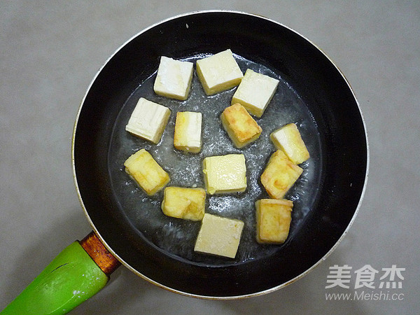 4.切好的豆腐均勻的蘸上一層干淀粉
