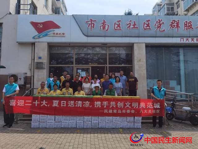 8月18日上午,民建青島市委會在八大關街道辦事處八大關社區(qū)開展“喜迎二十大,夏日送清涼,攜手共創(chuàng)文明典范城”慰問活動,為轄區(qū)環(huán)衛(wèi)工人和社區(qū)工作人員送去價值5000元的礦泉水和解暑飲料。民建青島市委會秘書長曹麗輝、辦公室主任全淵、社會服務處處長許影、企業(yè)委員會副主任趙靜,八大關街道辦事處主任王佩佩、八大關社區(qū)黨委書記張巍峰、八大關社區(qū)工作站負責人張恒銘參加活動。同時,現(xiàn)場還有10余名環(huán)衛(wèi)工和社區(qū)工作人員代表參加了活動。