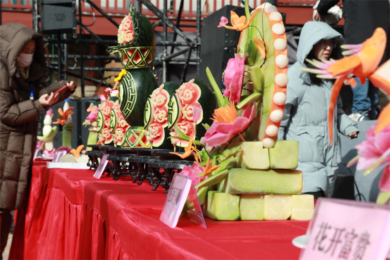 值得一提的是,本次蘿卜雕刻大賽恰逢農(nóng)歷正月初九,中國(guó)北方素有“咬春”的習(xí)俗,即在這一天吃蘿卜,寓意“長(zhǎng)長(zhǎng)久久,平平安安”?;顒?dòng)現(xiàn)場(chǎng),栩栩如生的蘿卜雕刻作品不僅讓市民游客大飽眼福,更讓大家感受到了濃濃的年味和美好的祝福。