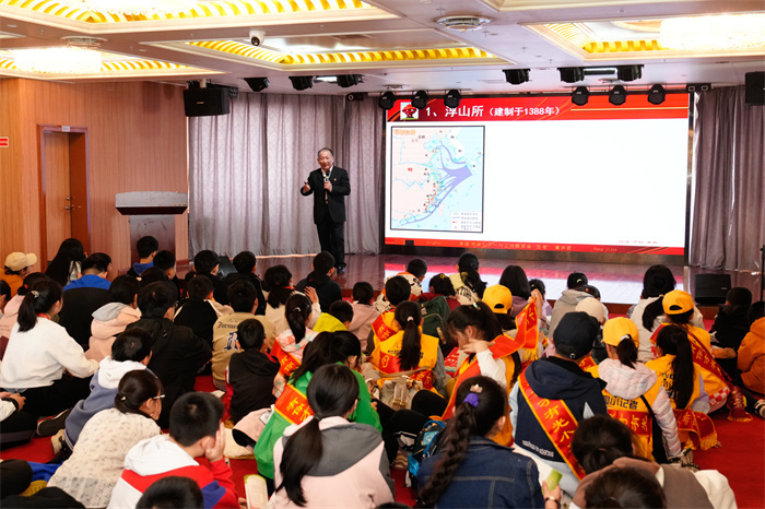 游輪啟航后70多歲的王繼軍登上講臺,為青少年講授“紅色海岸線”故事。他的講述聲情并茂,從明代設(shè)立的浮山所,到前海一線抗倭、反抗殖民者,從中國共產(chǎn)黨一大代表王盡美、鄧恩銘在青島領(lǐng)導(dǎo)轟轟烈烈的工人運動到革命烈士李慰農(nóng)英勇不屈、慷慨就義,從新中國成立初期紡織工業(yè)戰(zhàn)線的一面旗幟、全國勞模郝建秀到“人民工匠”國家榮譽稱號獲得者、全國勞模許振超……豐富詳實的史料、真實可感的場景、嚴謹清晰的邏輯以及精彩生動的講解,與游船航行中的實地體驗相互呼應(yīng)。這不僅讓在場的各界人士大開眼界,更使大家接受了一次深刻的思想教育。從奧帆中心到團島的前海一線,每一朵翻涌的浪花、每一塊靜默的礁石,都宛如一位位無聲的講述者,訴說著青島厚重的歷史,青少年們在波濤蕩漾間探尋青島的輝煌過往,深切感受紅色精神的洗禮。