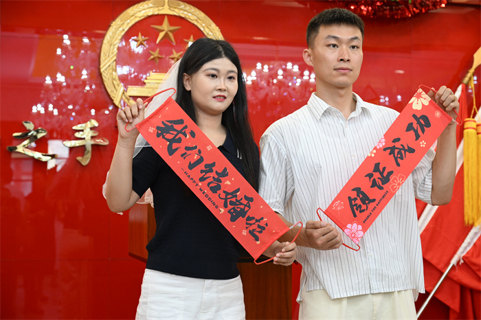 “七夕是中國傳統(tǒng)的情人節(jié),也是一個(gè)神圣的結(jié)婚紀(jì)念日。在這個(gè)浪漫幸福的日子里,我們工作人員提供更便捷的服務(wù)。同時(shí)我們開展移風(fēng)易俗宣傳工作,我們真誠希望廣大新人樹立文明、節(jié)儉、高尚的婚俗意識(shí),不大操大辦、抵制高額彩禮、爭做文明婚俗的倡導(dǎo)者、踐行者、推動(dòng)者、做新時(shí)代文明新人,建立和諧家庭。”即墨區(qū)民政局婚姻登記處主任張葵葵表示,為了迎接七夕登記小高峰,即墨區(qū)婚姻登記處提前做好應(yīng)急預(yù)案,工作人員提前到崗、延長工作時(shí)間、增設(shè)登記服務(wù)窗口,保證登記工作高效、流程通暢。