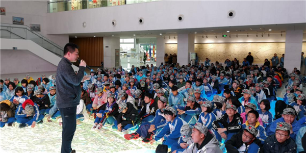 上課地點位于奧帆博物館一樓中廳,大家在地屏上席地而坐,共同參與課堂內容及互動。