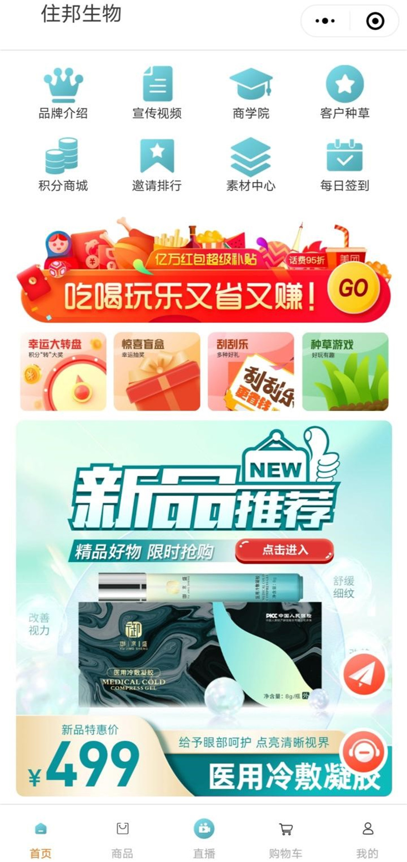 通過(guò)代理分享的二維碼進(jìn)入微信小程序“住邦生物科技”,商城中只有“御京盛·醫(yī)用冷敷凝膠”這一款產(chǎn)品,產(chǎn)品零售價(jià)為499元/盒,目前,小程序是該產(chǎn)品的唯一購(gòu)買(mǎi)渠道。