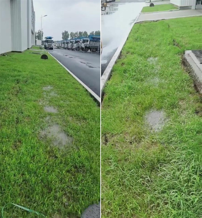 園區(qū)多處草地下面的雨污管已經(jīng)坍塌,雨水無法排出。