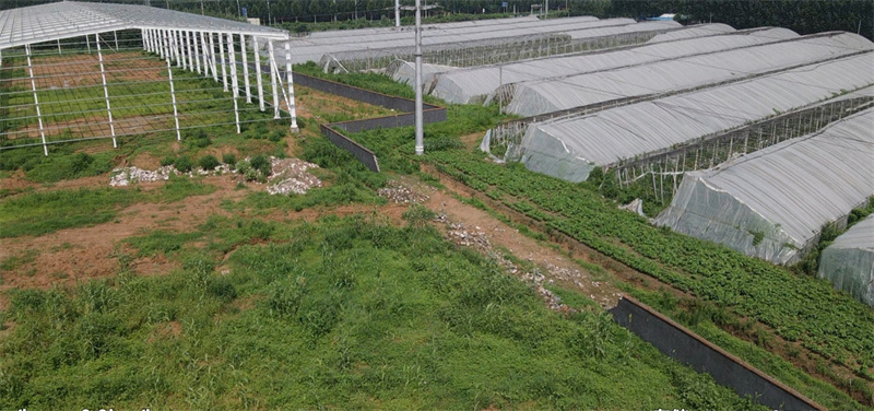 牟先生說,南鄰這個(gè)院子占地200多畝,是2021年5月份左右開始建設(shè)的,占的是王家我樂村的土地,當(dāng)時(shí)麥子都快成熟了就全被推了。園區(qū)至今都沒有項(xiàng)目牌、廠名等標(biāo)志,只聽說是一個(gè)現(xiàn)代化農(nóng)業(yè)高標(biāo)準(zhǔn)項(xiàng)目,沒人知道項(xiàng)目名稱,只知道是個(gè)姓王的女老板的。村民們說沒見過租地合同也不知是什么項(xiàng)目,只知道簽過一份領(lǐng)錢的一張紙,簽完就被村委收回了。土地確權(quán)證也不在村民手里,換證后都被村委收著,村民們也不知道現(xiàn)在土地是什么性質(zhì)。