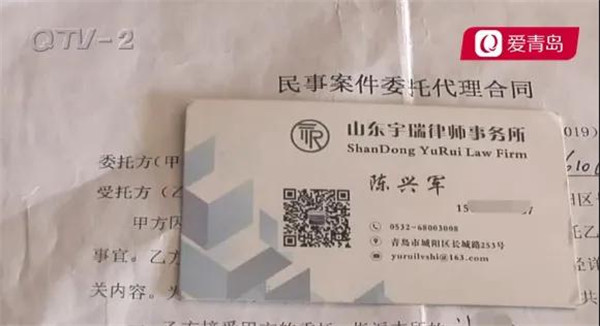 王先生給劉律師打去電話確認(rèn)此事,但話還沒說完,劉律師就掛斷了電話,隨后記者陪同王先生來到了山東宇瑞律師事務(wù)所,由于正值節(jié)假日,這里沒人上班。記者通過名片上的信息給陳興軍打了電話。