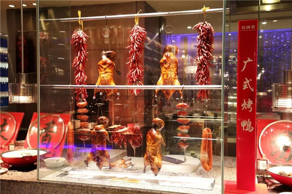 路及燒臘檔口,肉更是食客念念不忘的那一口兒!廣受好評(píng)的廣式烤鴨、叉燒肉和秘制烤翅依然是鐘愛(ài)的味道,脆皮燒鵝,外酥里嫩,片片擺好盤(pán),等您來(lái)??!