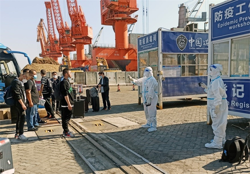 此外,該隊牢固樹立“100-1=0”的防控理念,緊盯船員換班、物品裝卸等高風(fēng)險環(huán)節(jié),從嚴(yán)核查航行軌跡、從嚴(yán)排查載運人員貨物情況、從嚴(yán)落實管控措施,做到入境船員聯(lián)控、交接、轉(zhuǎn)運、跟蹤四個“點對點”閉環(huán)管理,妥善處置8起外籍船員核酸篩查呈陽性事件,口岸保持“零感染、零擴散”。