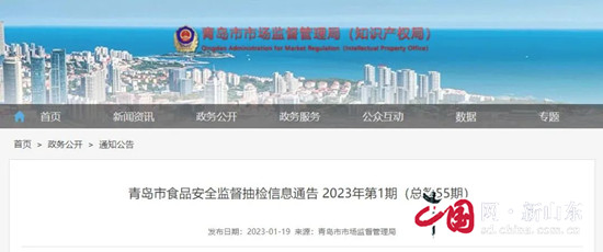 近日,青島市市場監(jiān)督管理局發(fā)布了《青島市食品安全監(jiān)督抽檢信息通告2023年第1期(總第55期)》。