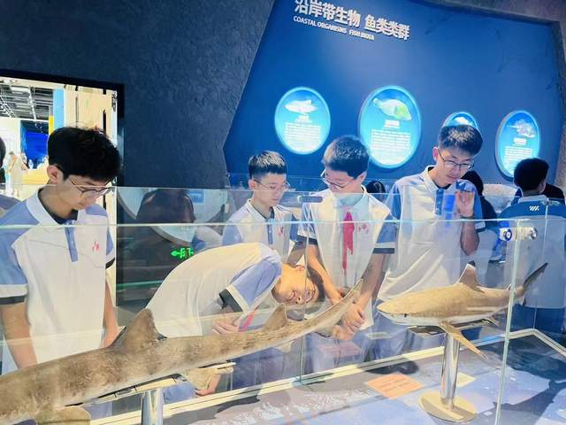 一進(jìn)入科技館,學(xué)生們就被豐富的展覽內(nèi)容所吸引。在海岸帶生物和魚類類群展區(qū),他們仿佛置身于神秘的海底世界,對各種奇特的海洋生物和魚類類群產(chǎn)生了濃厚的興趣。通過詳細(xì)的解說和生動的展示,孩子們對海底資源的多樣性和保護(hù)意識有了更深刻的認(rèn)識。