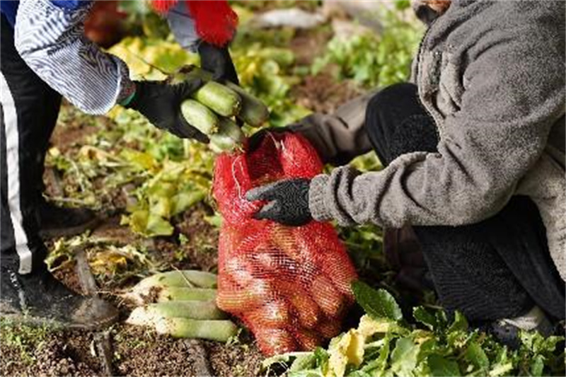 沽河企業(yè)葉派餐飲總經(jīng)理李曉鵬主動(dòng)致電,表示愿意通過“就餐送菜”等形式幫助菜農(nóng)解決困難,在通話結(jié)束后立即動(dòng)身趕到蘿卜種植基地實(shí)地考察,在與種植戶深入洽談后,決定在大高嵐村收購20噸青蘿卜。12月13日下午愛心企業(yè)協(xié)助種植戶完成第一批采收。