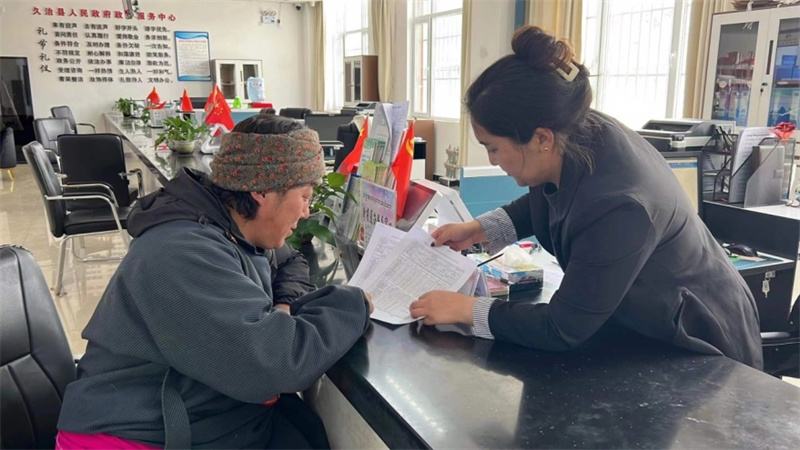 瑪沁縣政務(wù)服務(wù)大廳醫(yī)保窗口審核員中國人壽壽險(xiǎn)瑪沁支公司員工才忠吉經(jīng)常為拉毛杰做審核,她說,今年第一次看到拉毛杰自己拿著報(bào)銷資料到窗口時(shí),心中為他的病情好轉(zhuǎn)感到高興。