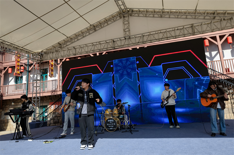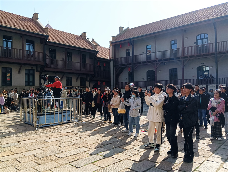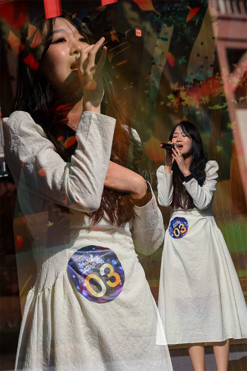 下午1時(shí)30分,音樂(lè)節(jié)復(fù)賽正式開(kāi)啟。優(yōu)美的旋律,嘹亮的歌聲,活動(dòng)一開(kāi)始就吸引大批在廣興里游玩的市民旅客駐足觀看。駐青高校的學(xué)子們唱著《如愿》《倔強(qiáng)》《飄向遠(yuǎn)方》等一首首耳熟能詳?shù)母枨钡秩诵牡男珊涂鞓?lè)自由的氛圍數(shù)次引起了現(xiàn)場(chǎng)觀眾歡呼鼓掌。在現(xiàn)場(chǎng)觀眾中,有各高校選手們自帶的后援加油團(tuán),有跟著大人前來(lái)湊熱鬧的小朋友,還有很多聞聲而來(lái)的年輕人。來(lái)往的觀眾時(shí)而揮動(dòng)雙臂,跟著音樂(lè)的節(jié)奏輕輕搖擺;時(shí)而舉起手機(jī)來(lái)回拍攝,記錄下參賽選手們的精彩瞬間。
