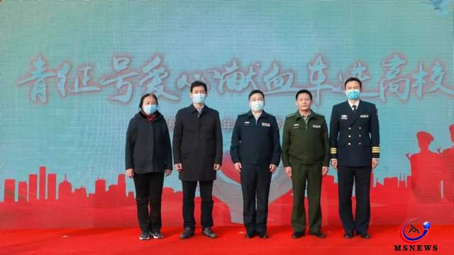 參會(huì)的各位領(lǐng)導(dǎo)共同啟動(dòng)“青征號(hào)”愛心獻(xiàn)血車進(jìn)高?;顒?dòng)。