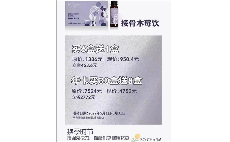 與森米、夢笙一樣,歲暢瞄準(zhǔn)的依然是保健市場,旗下產(chǎn)品包括體重管理系列,生理管理系列和肌膚管理系列。雖然歲暢所銷售的依然是普通食品,但宣傳的功效仍舊離不開保健作用。以“歲暢接骨木莓飲品”為例,該產(chǎn)品就被經(jīng)銷商提供的宣傳材料包裝出了提高免疫力的保健功效。