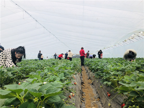 鮮紅的草莓個(gè)個(gè)如小燈籠一般垂著